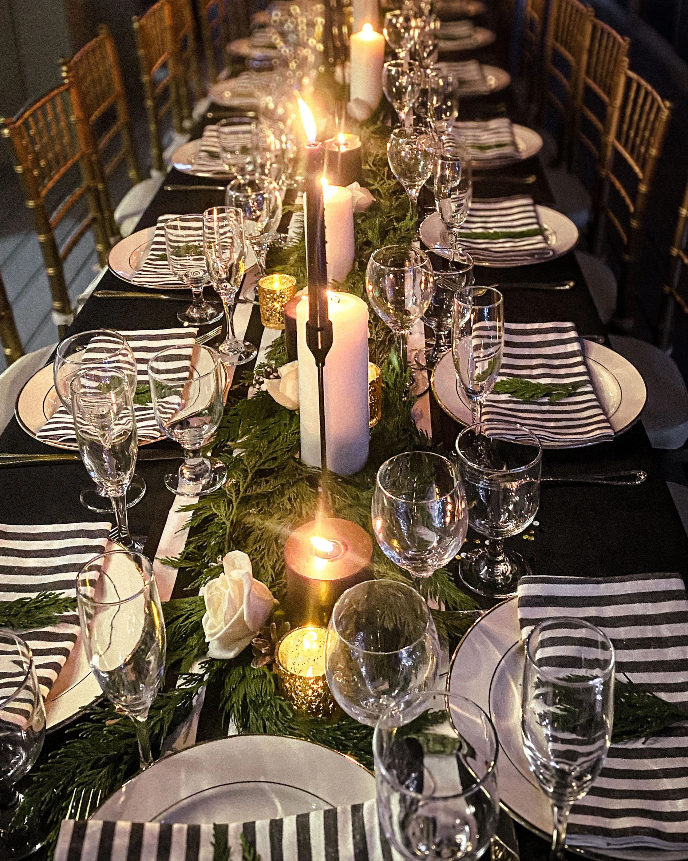 Layered tablescapes and design that carry guests seamlessly from dinner into celebration.
